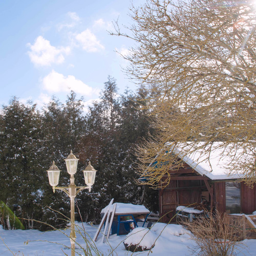 Das eine Ufer des Sees ist vom Ferienhaus aus zugänglich, und die andere Seite kann über eine Brücke, die den Üßer